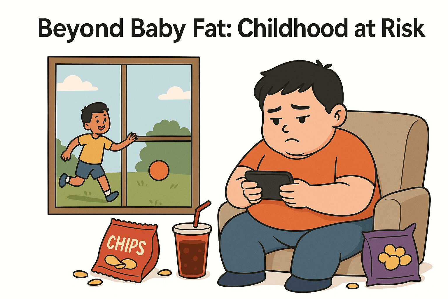 Obesity in childhood is not only harmlful, It also paves the way for metabolic issues: insulin resistance, early onset of diabetes, high blood pressure, fatty liver, hormonal imbalance — and even cardiovascular disease, not decades later, but often by early adulthood. Overweight children are also more vulnerable to low self-esteem, social exclusion, and emotional stress.