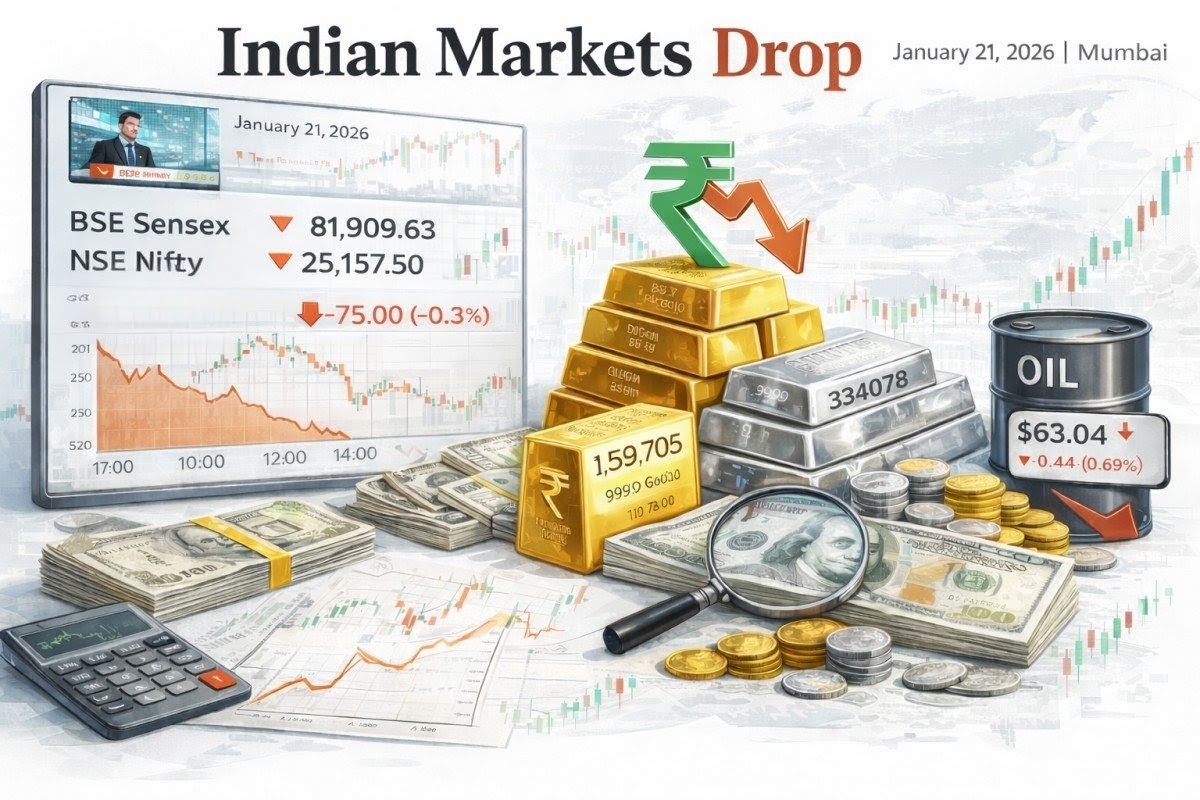 Indian Markets Slip as Rupee Weakens, Gold and Silver Surge Amid Global Uncertainty