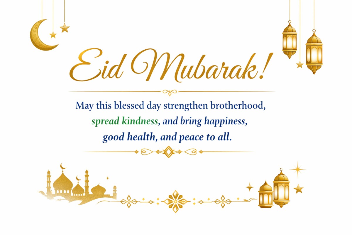 Best wishes on Eid al-Fitr. May this blessed day strengthen brotherhood, kindness, and mutual respect all around us. May it bring peace to every heart, harmony to every home, and renewed hope for a brighter tomorrow.