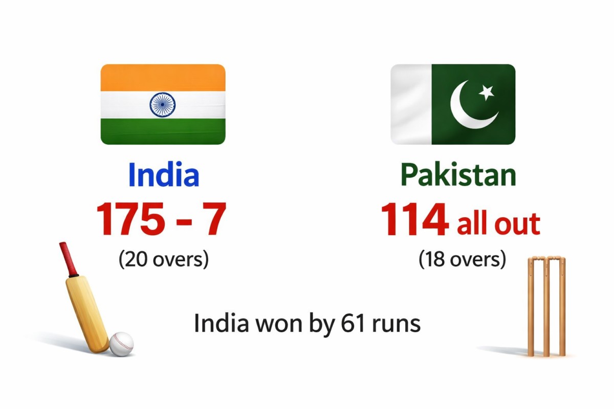 Colombo, February 15, 2026: India delivered a commanding all-round performance to defeat Pakistan by 61 runs in the 27th match of the ICC Men’s T20 World Cup 2026 on Sunday. After being asked to bat first, India posted a competitive 175 for 7 in their allotted 20 overs and then bowled Pakistan out for 114 in 18 overs to seal a comprehensive win.