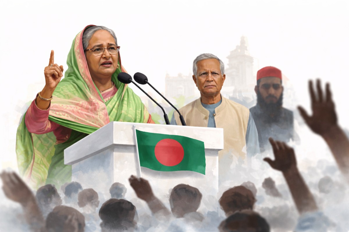 Sheikh Hasina’s Fiery Address from Exile: A Scathing Critique of the Yunus Regime